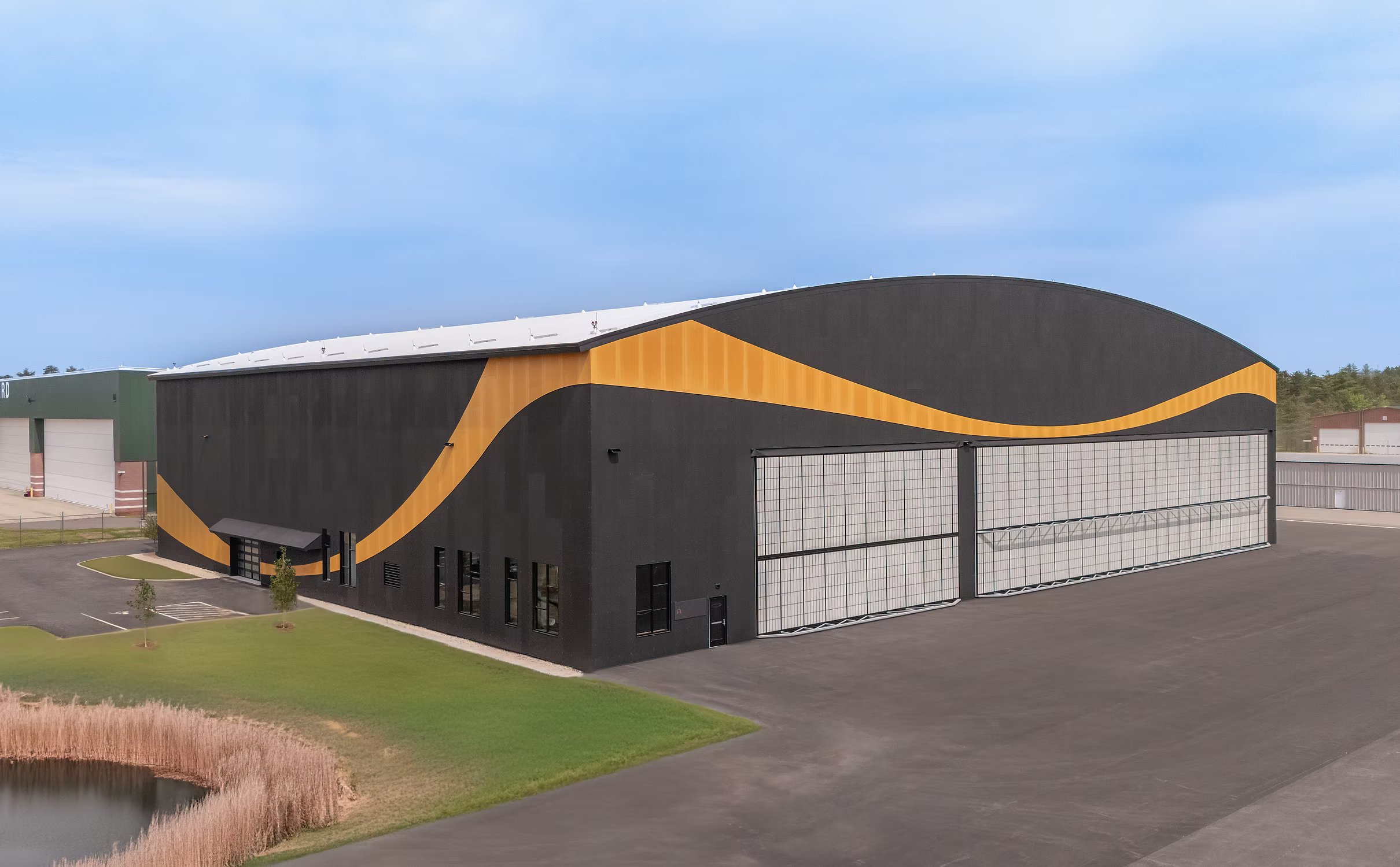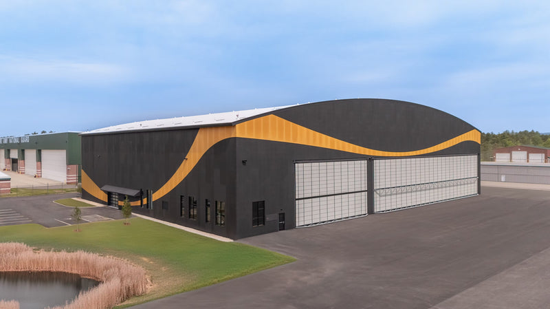 At its core are 210-foot clear-span glulam and steel roof trusses, supported by towering 42-foot glulam columns. The exterior is clad in Richlite—a naturally non-porous, FSC®-certified material renowned for its resilience in extreme weather conditions. Easily milled and highly durable, Richlite was instrumental in shaping the hangar’s signature curved façade, marrying form with function in a striking display of modern design.