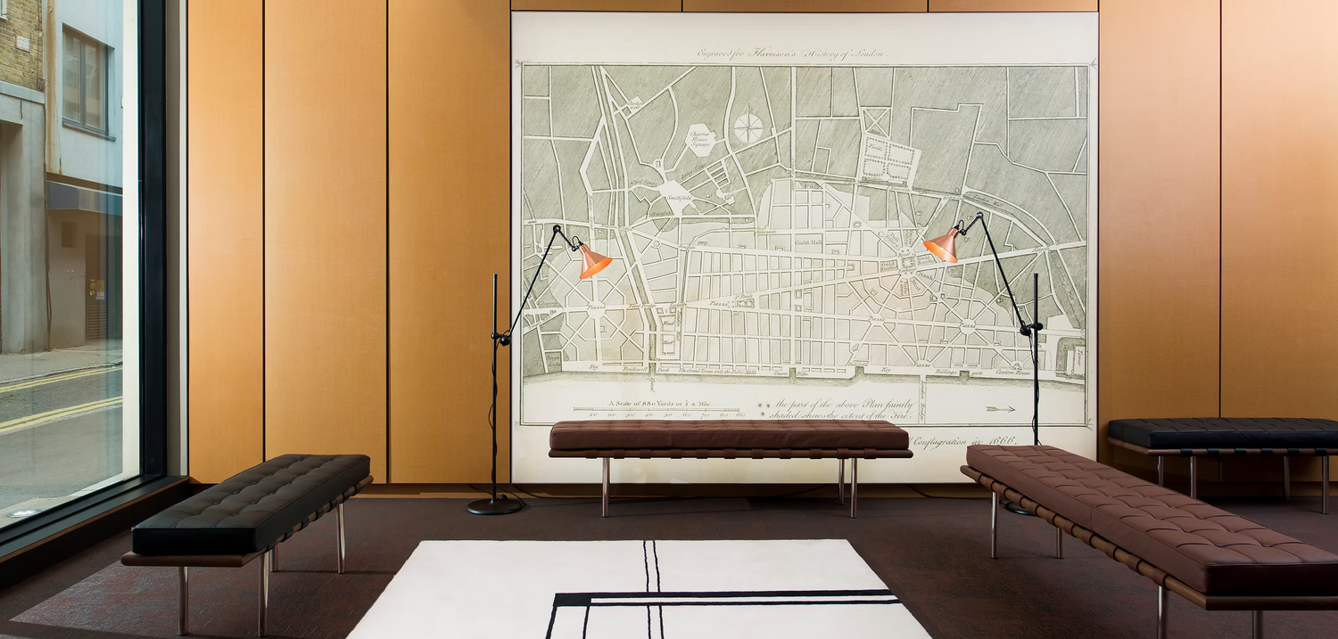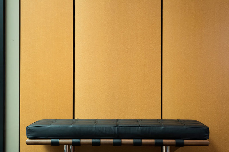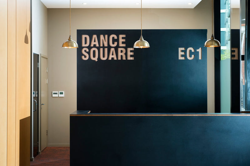 A combination of simple materials and minimal furniture created a sophisticated entrance lobby for the residents of Dance Square, a residential development in Clerkenwell, London. The burnt orange of the Richlite wall cladding complements the graphic Bolon flooring, all offset by carefully curated furnishings.