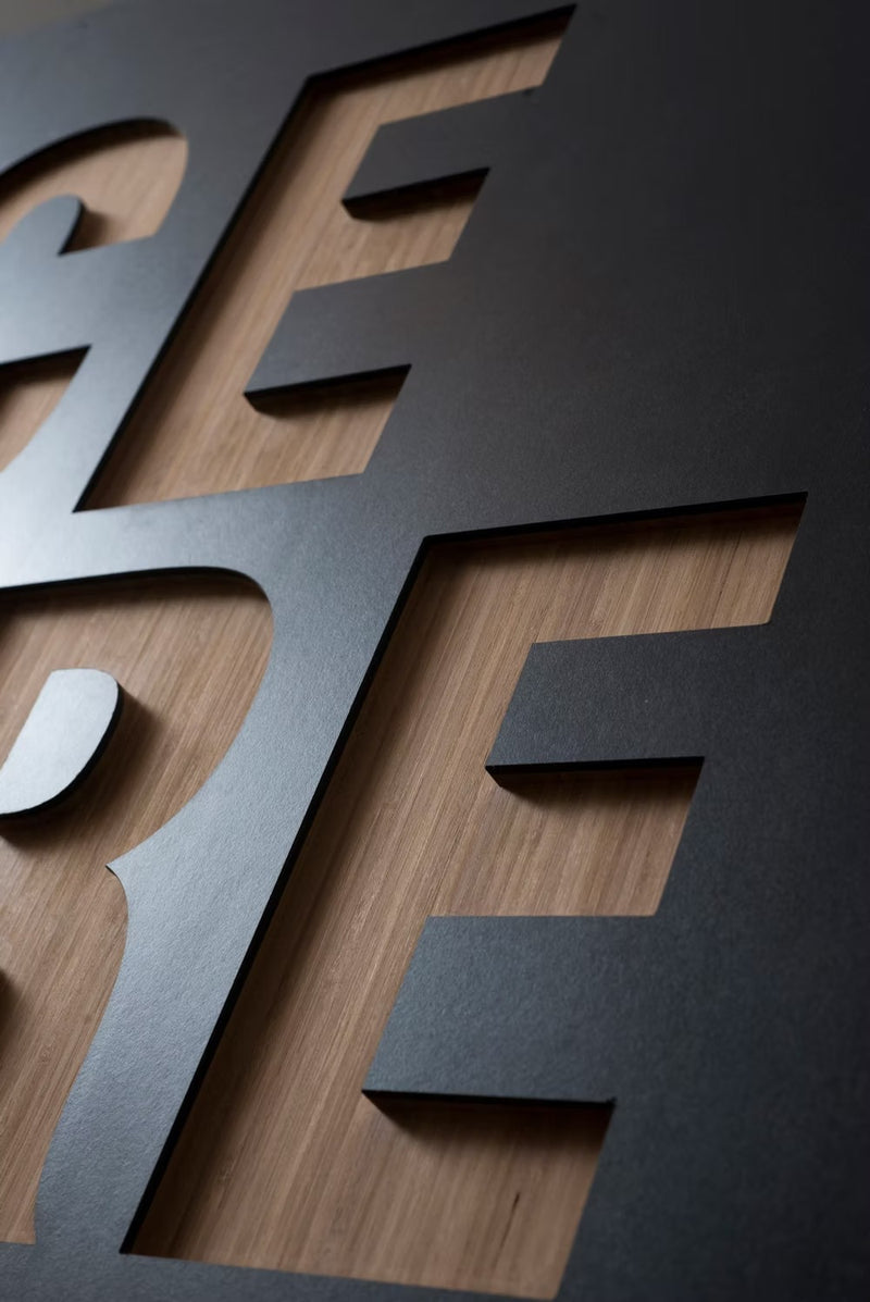 Simple Dance Square branding was integrated into the materiality routed into the back panel at reception, taking full advantage of the Richlite Stratum bamboo core. The minimalist reception desk was formed from the same Richlite to maintain continuity throughout the sleek semi-public space.