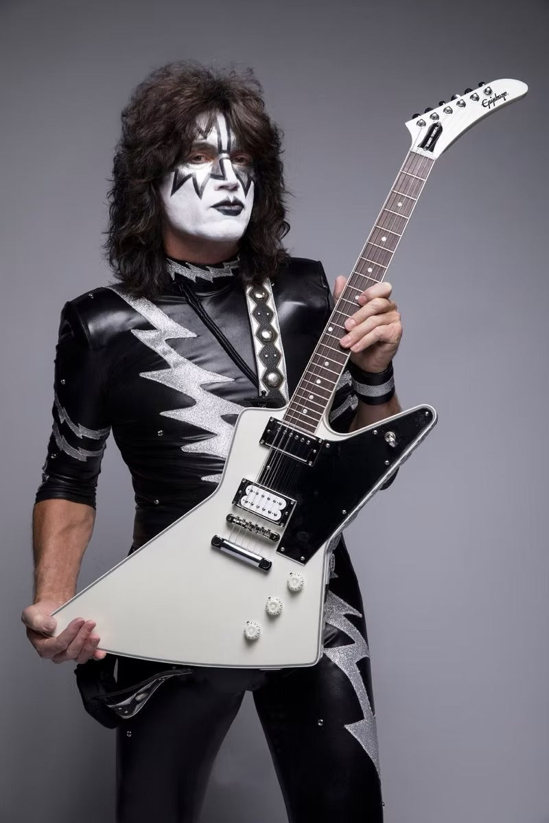 The limited edition Tommy Thayer "White Lightning" Explorer Outfit is the third signature Epiphone guitar designed by legend Tommy "Spaceman" Thayer of KISS.