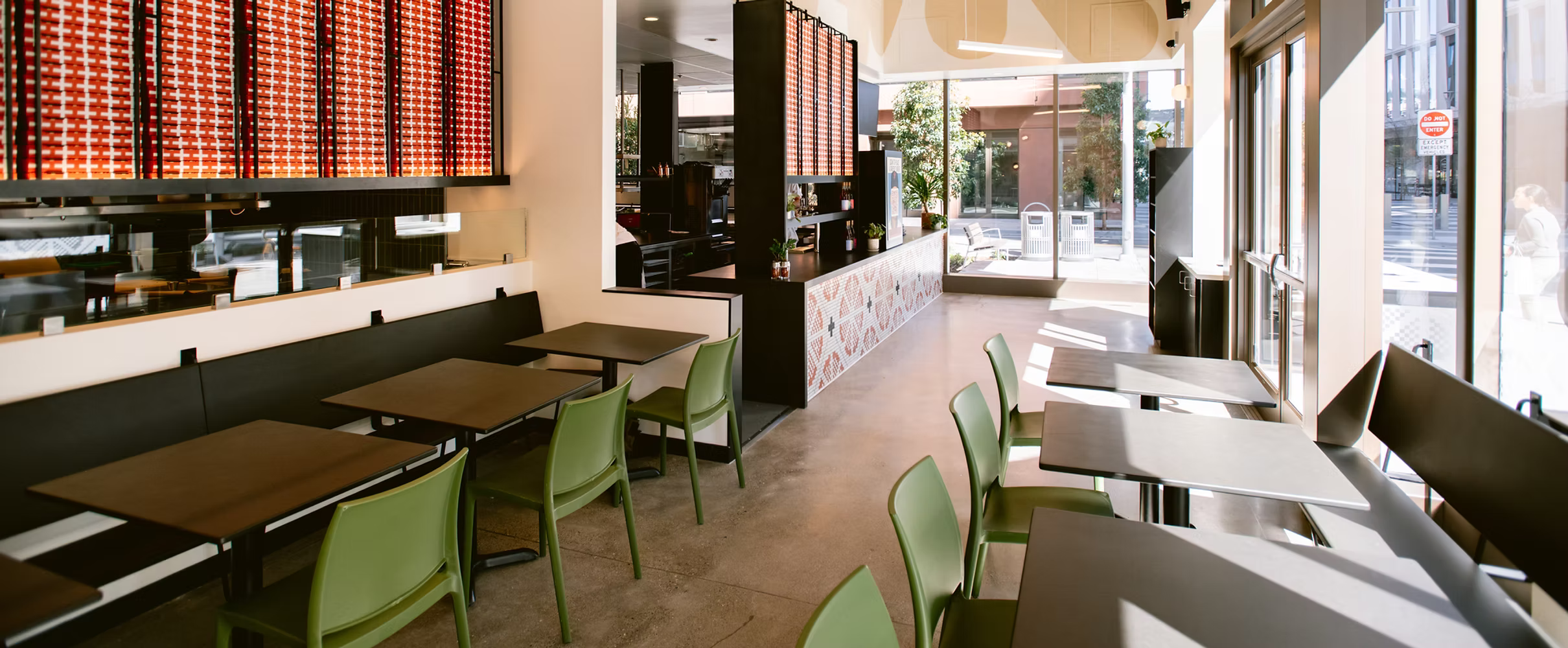 Located in the Mission Rock neighborhood of San Francisco, this 1,800-square-foot shop offers a welcoming atmosphere that mirrors the hospitality of the original Flour + Water brand. Architect Gavin Knowles has seamlessly integrated efficient flow for takeout and delivery with inviting spaces for diners, including banquette seating and shaded outdoor tables.